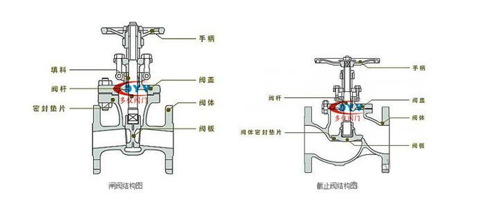 截止閥和閘閥在原理上的區(qū)別為,截止閥是上升閥桿式的,手輪跟著閥桿一起做旋轉(zhuǎn)和上升運動。閘閥是手輪旋轉(zhuǎn),閥桿做上升運動。流量各不相同,閘閥要求全開或者全關(guān),而截止閥則不需要。截止閥有規(guī)定進口和出口方向;閘閥沒有進出口方向要求。