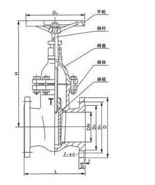 二、暗桿閘閥結(jié)構(gòu)圖: