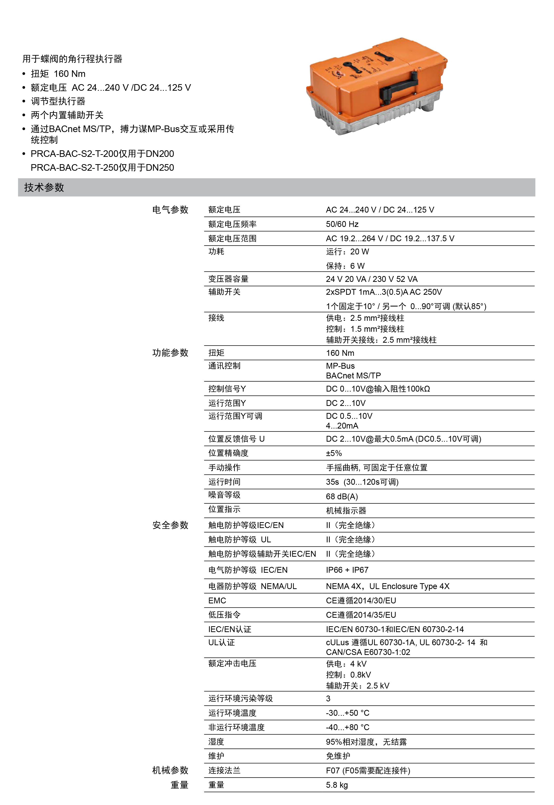 PRCA-BAC-S2-T/-T-200/-T-250角行程執(zhí)行器
