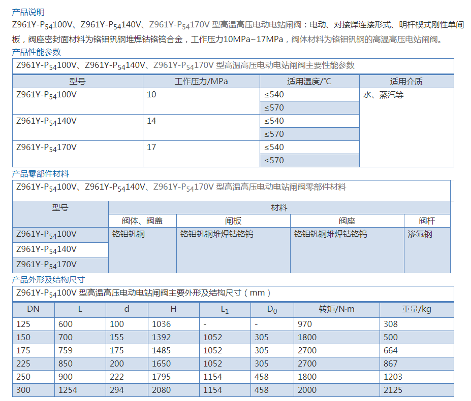 Z961Y-P54型 高溫高壓電動(dòng)電站閘閥