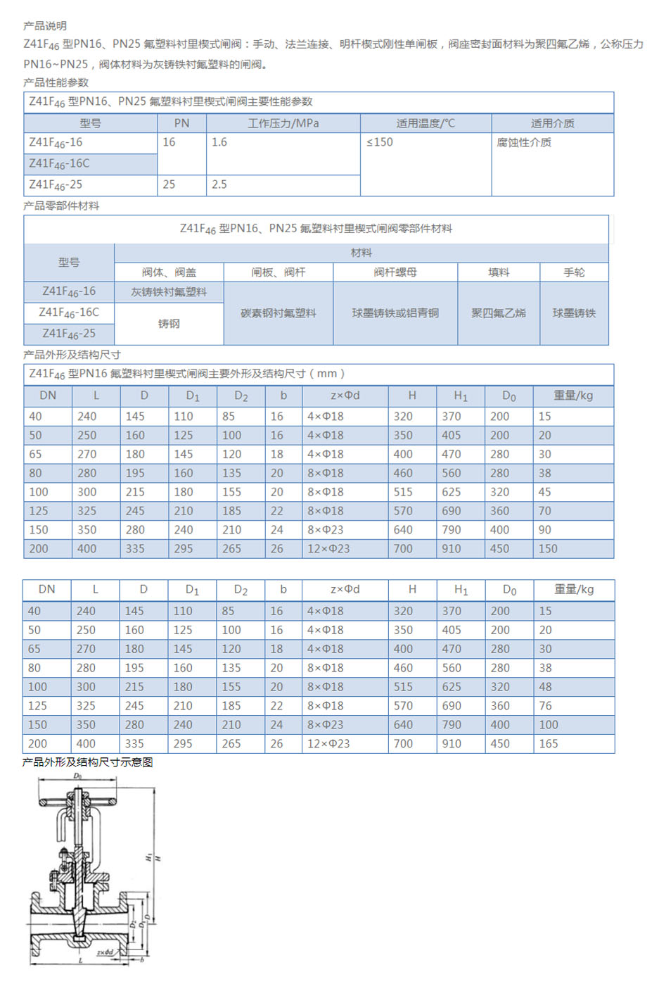 Z41F46型 襯氟楔式閘閥