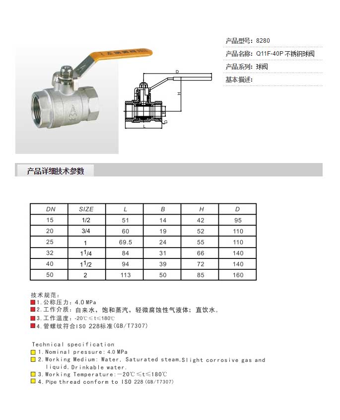 Q11F-40P 不銹鋼球閥