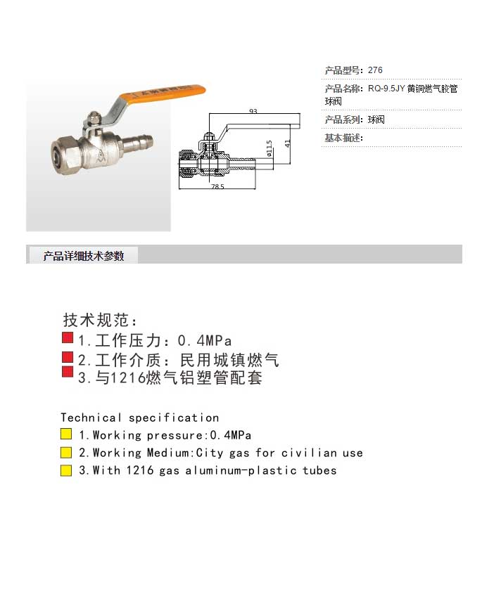 RQ-9.5JY 黃銅燃氣膠管球閥
