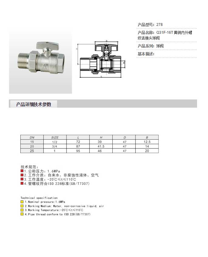 Q31F-16T 黃銅內(nèi)外螺紋活接頭球閥