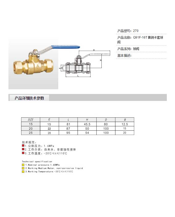 適用溫度: -20℃≤t≤110℃