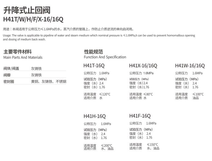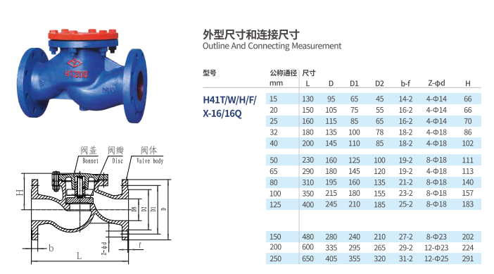 升降式止回閥H41T/W/HF/X-16/16Q