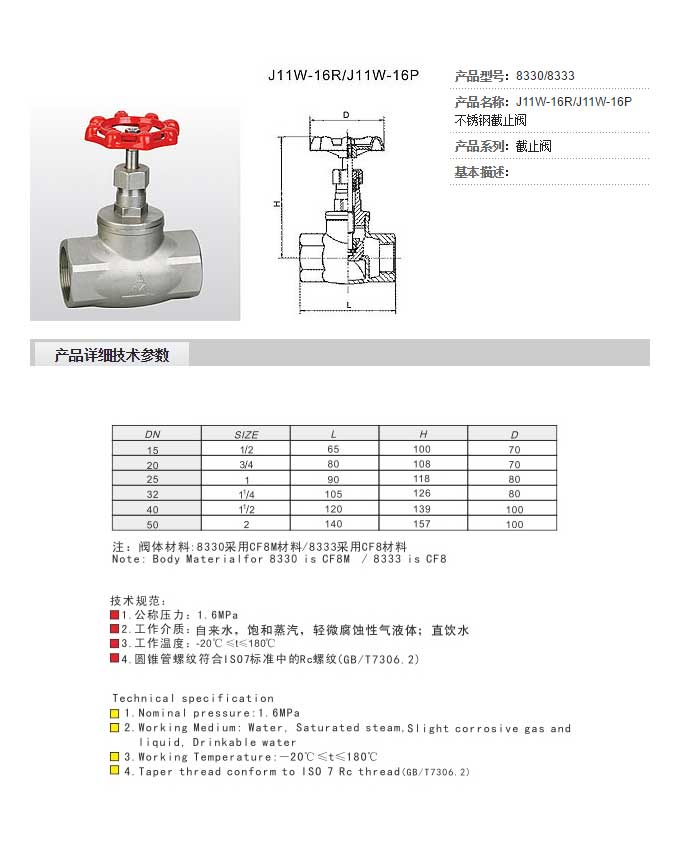 J11W-16R/J11W-16P 不銹鋼截止閥