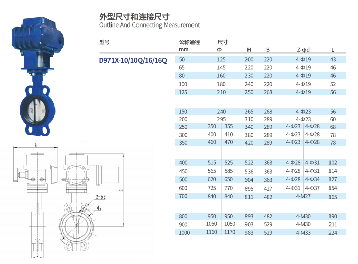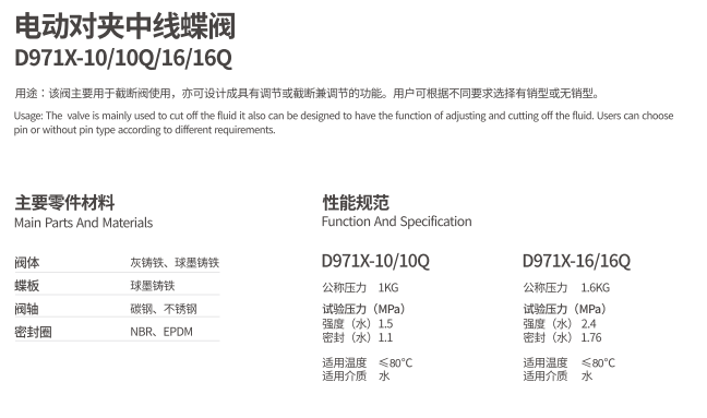 電動對夾中線蝶閥D971X-10/10Q/16/16Q