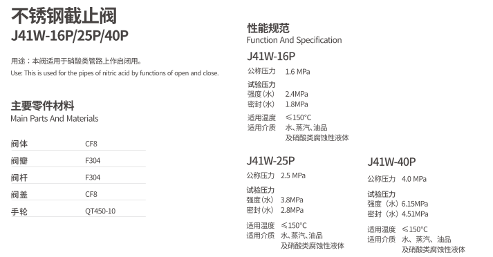 不銹鋼截止閥J41W-16P/25P/40P