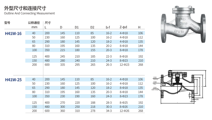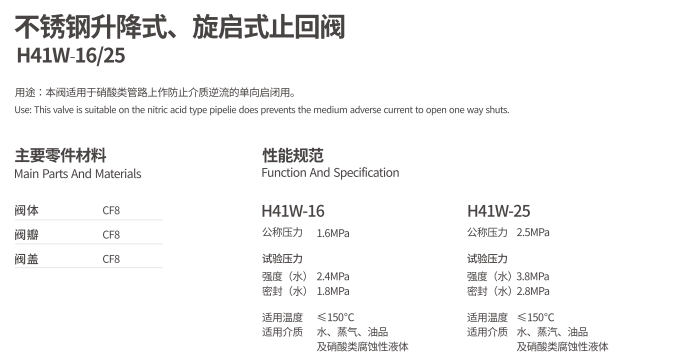 不銹鋼升降、旋啟式止回閥H41W-16/25