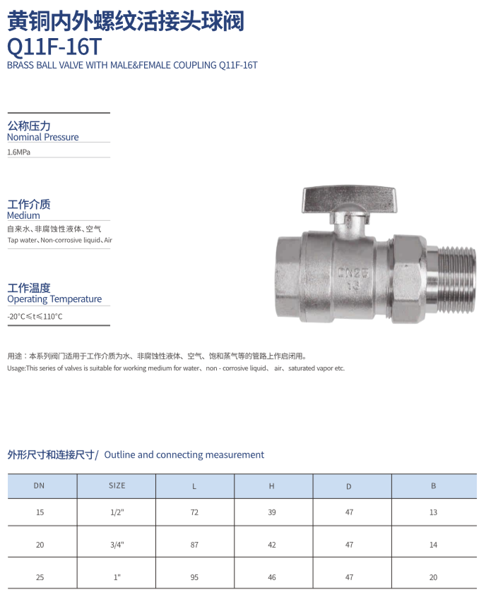 黃銅內外螺紋活接頭球閥Q11F-16T