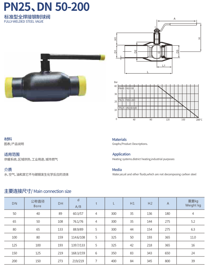 標(biāo)準(zhǔn)型全焊接鋼制球閥(PN25、DN50-200)