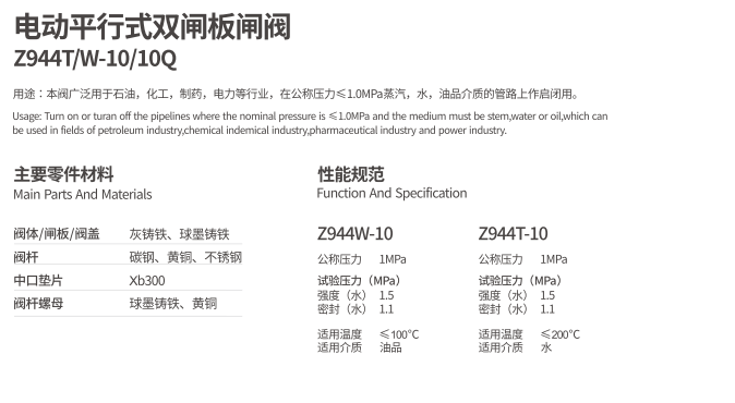 電動(dòng)平行式雙閘板閘閥Z944T/W-10/10Q