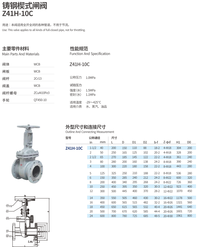 鑄鋼楔式閘閥Z41H-10C