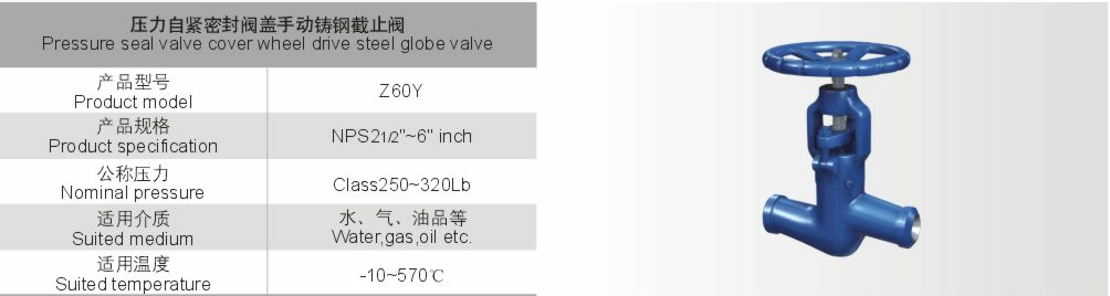 壓力自緊密封閥蓋手動鑄鋼截止閥Z60Y