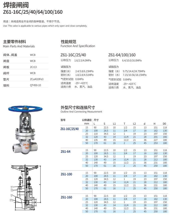 適用壓力:1.6/2.5/4.0/6.4/10.0/16.0Mpa