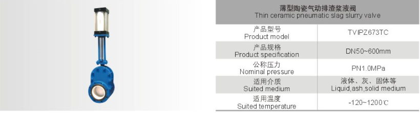 薄型陶瓷氣動排渣漿液閥TVIPZ673TC
