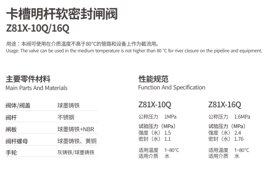 卡槽明桿軟密封閘閥Z81X-10/16Q