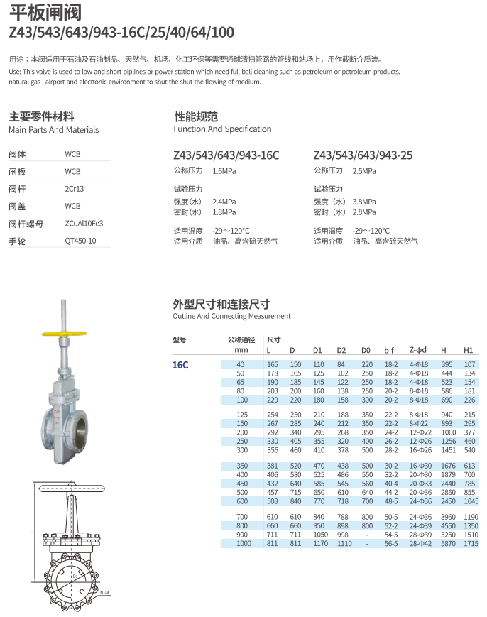 平板閘閥Z43/543/643/943-16C/25/40/64/100
