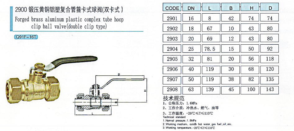 鍛壓黃銅鋁塑復(fù)合管箍卡式球閥(雙卡式)Q91F-16T