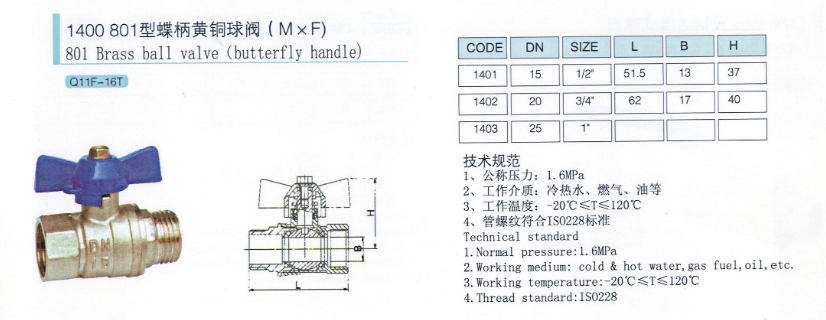 801型蝶柄黃銅球閥(M X F)Q11F-16T