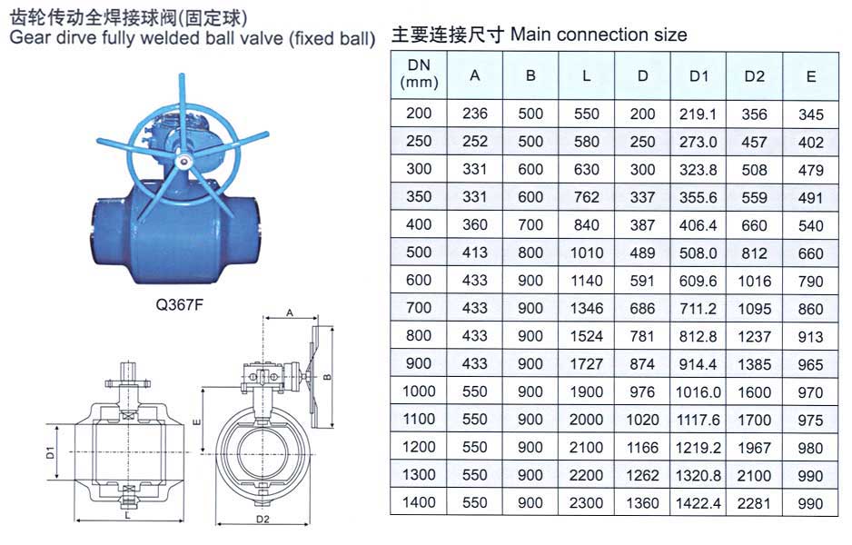 齒輪傳動全焊接球閥(固定閥)Q367F