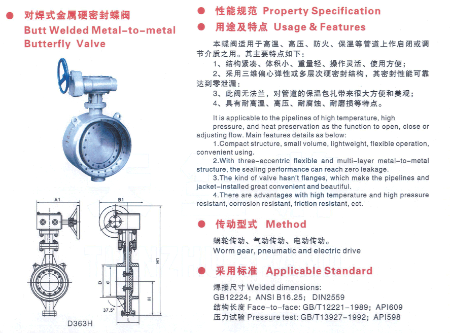 D363H 對(duì)焊式金屬硬密封蝶閥
