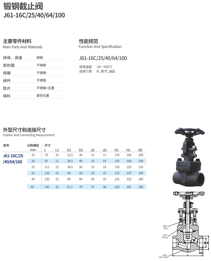 鍛鐵截止閥J61-16C/25/40/64/100
