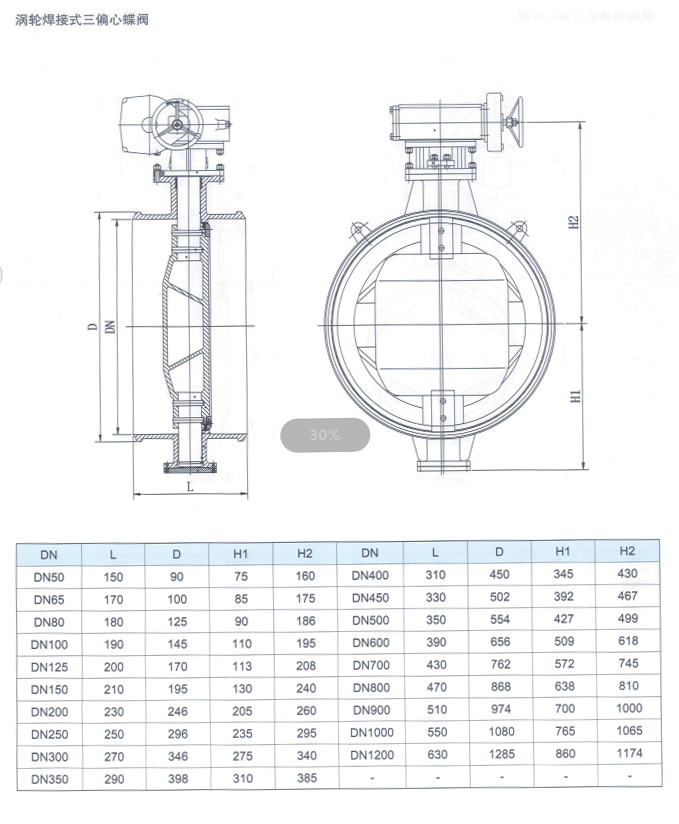 D343Y-16C渦輪法蘭式三偏心蝶閥
