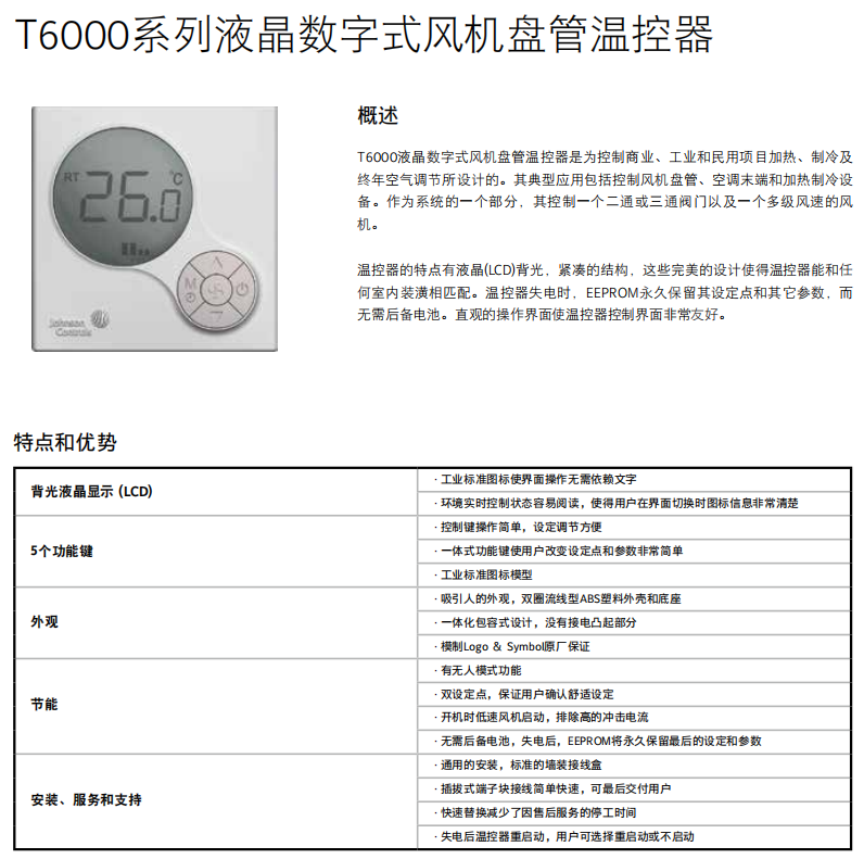 T6000系列液晶數(shù)字式風(fēng)機(jī)盤管溫控器