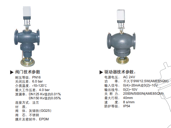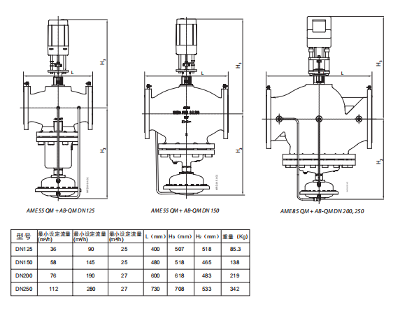AB-QM+AME55QM/AME85QM動(dòng)態(tài)壓差平衡電動(dòng)調(diào)節(jié)閥DN125~250